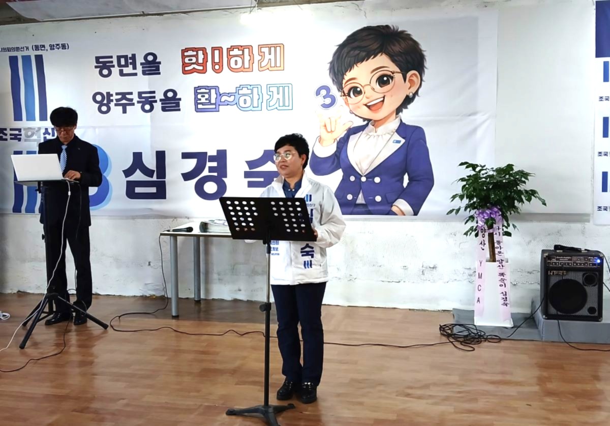 심경숙 후보는 지난 11일 오후 2시, 양산시 양주동에 위치한 선거사무실에서 개소식을 열고 본격적인 선거운동의 시작을 알렸다. 이날 개소식에는 지역 주민과 지지자, 주요 인사 등 약 100여 명이 참석해 성황을 이뤘으며, 후보의 출마 의지와 비전을 공유하는 뜻깊은 자리로 마련됐다. 행사는 내빈 소개를 시작으로 축사, 후보 인사말, 축하 퍼포먼스, 기념 촬영 순으로 진행됐다.